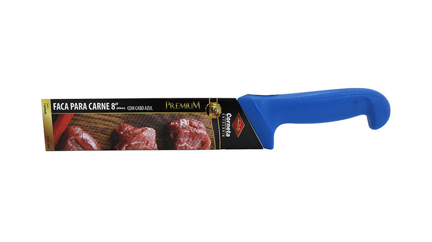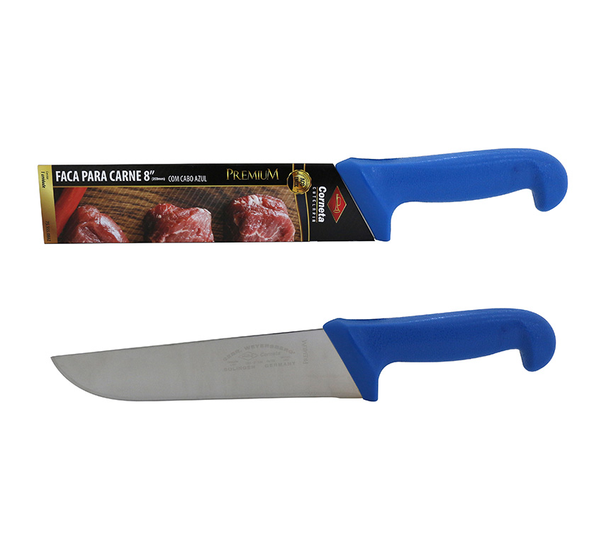 FACA PARA CARNE DE INOX COM CABO AZUL PREMIUM 8"