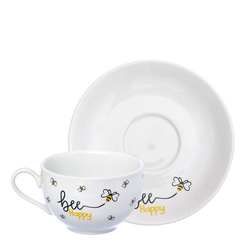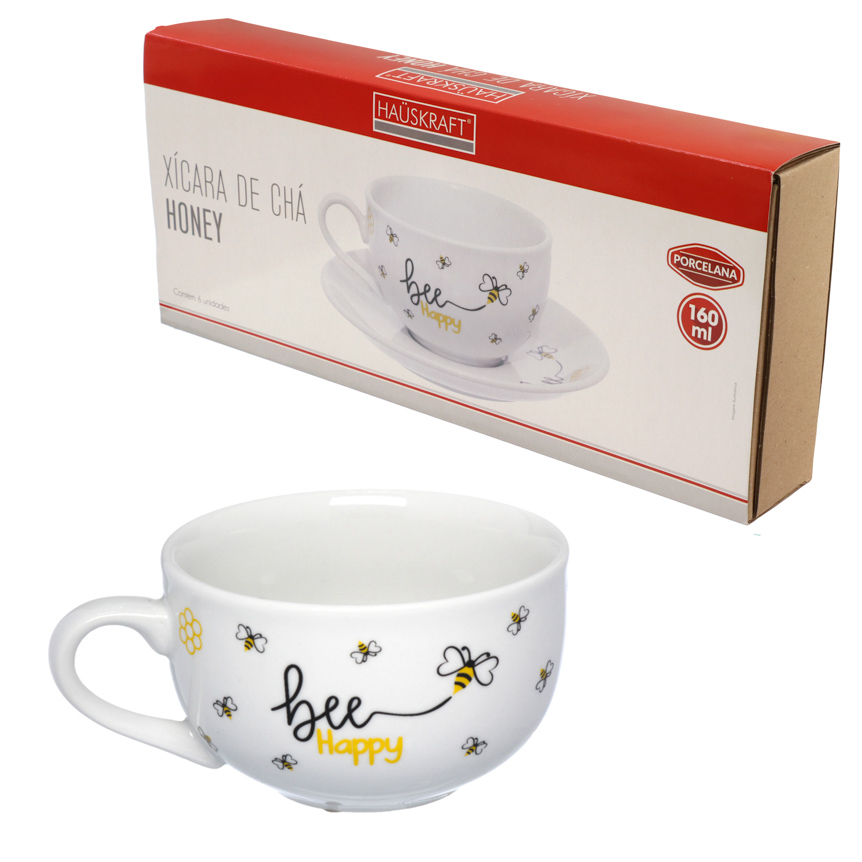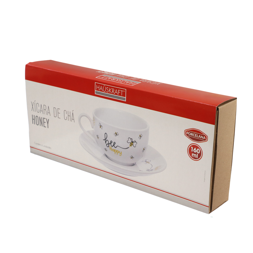 XÍCARA PARA CHÁ COM PIRES DE PORCELANA HONEY 160ML 6 PEÇAS