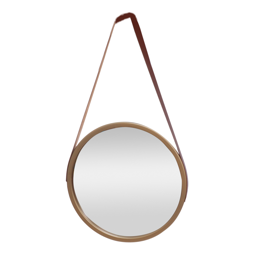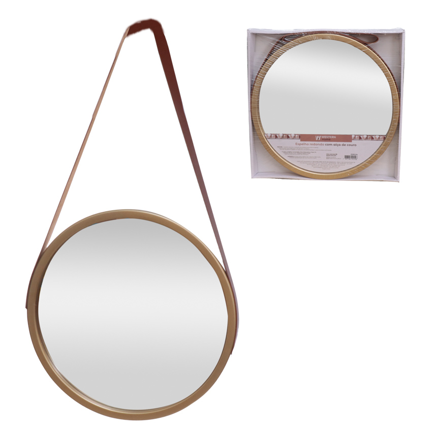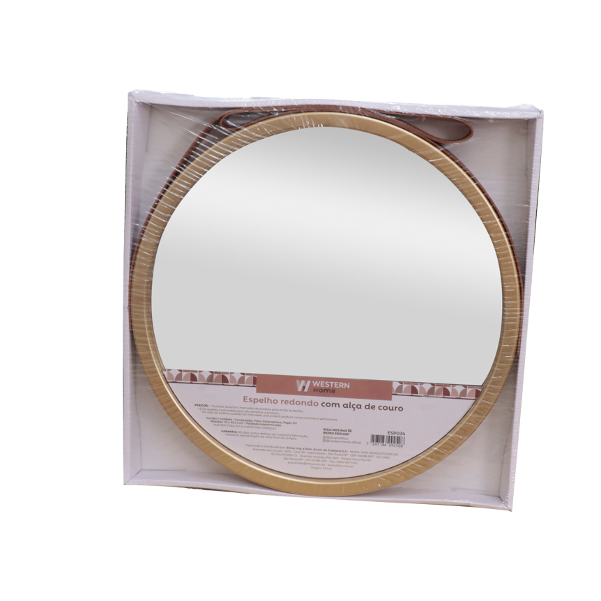ESPELHO REDONDO COM ALCA DE COURO 32CM