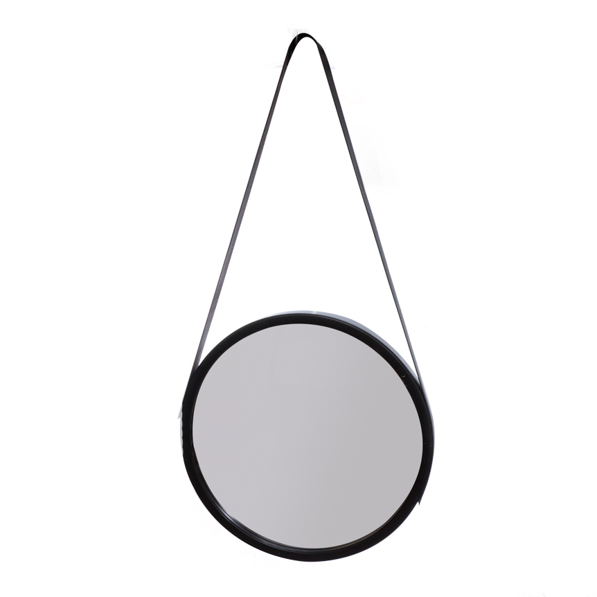 ESPELHO REDONDO COM ALÇA DE COURO 32CM