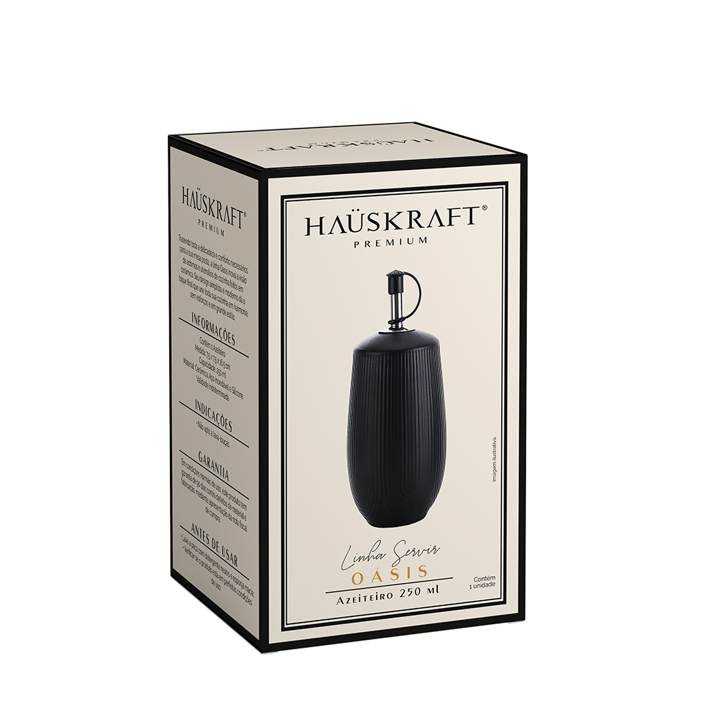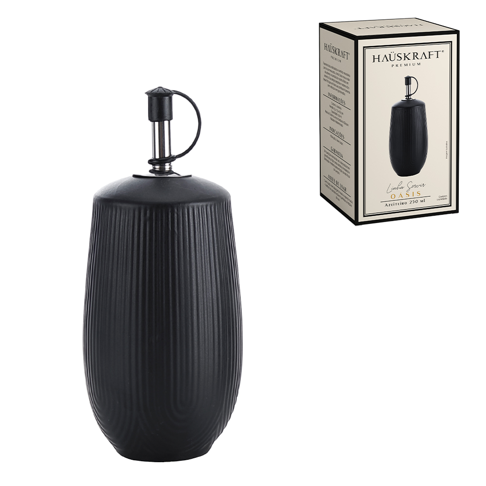 AZEITEIRO DE CERAMICA OASIS BRANCO PRETO 250ML