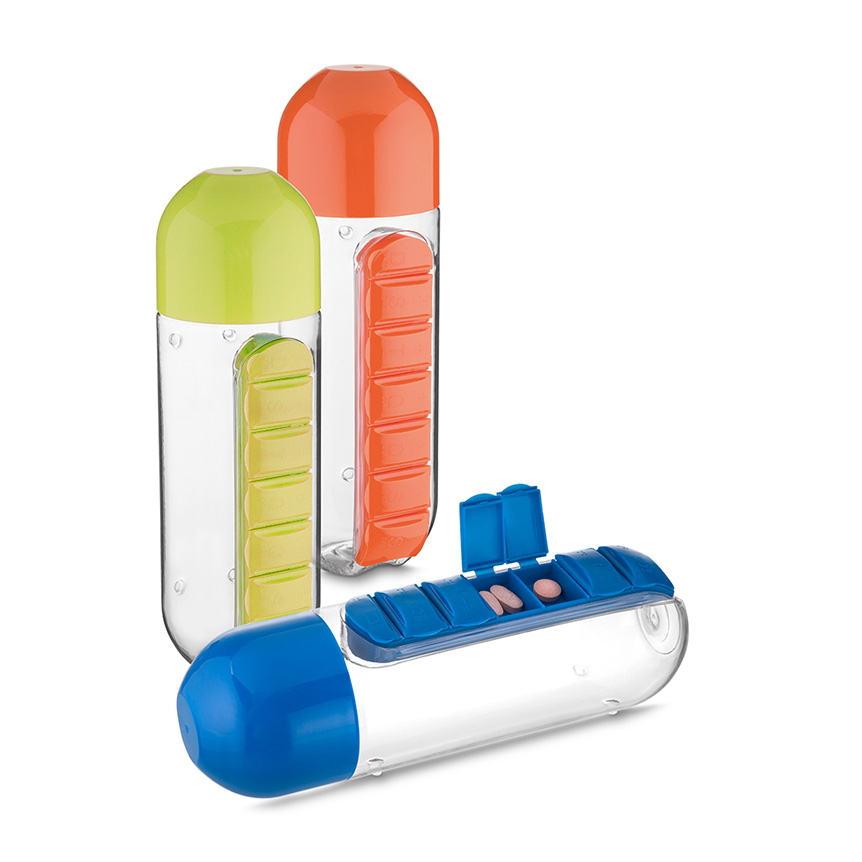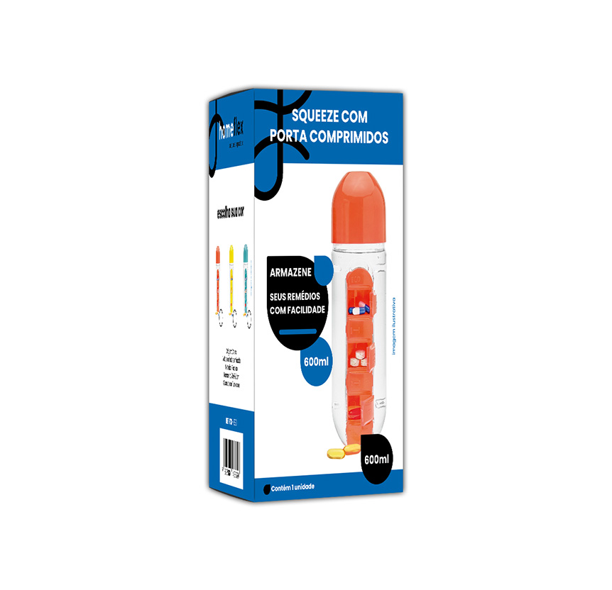 • O Squeeze com Porta Comprimidos é ideal para manter a organização de comprimidos para tomar durante a semana, pois tem um compartimento para cada um dos dias.