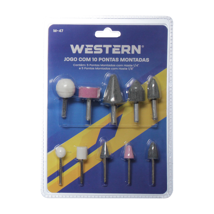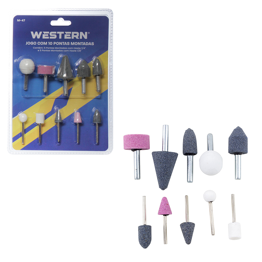 Essas pontas montadas da Western, sao utilizadas em furadeiras para lixar, desbastar, retificar, esmerilhar, remover rebarbas e alisar pecas em locais de difícil acesso. Versatil e utilizavel em qualquer furadeira eletrica. Oferecemos ferramentas de qualidade que nao podem faltar para voce!
